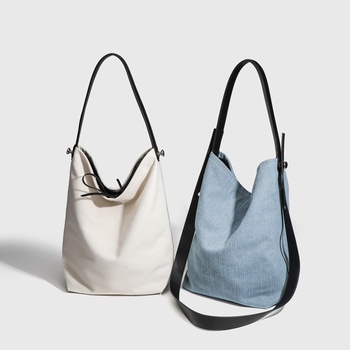 Borsa morbida in Denim di grande capacità prodotti all'ingrosso con coulisse borsa a secchiello semplice 2in 1/Set borsa a tracolla in tela di vendita calda